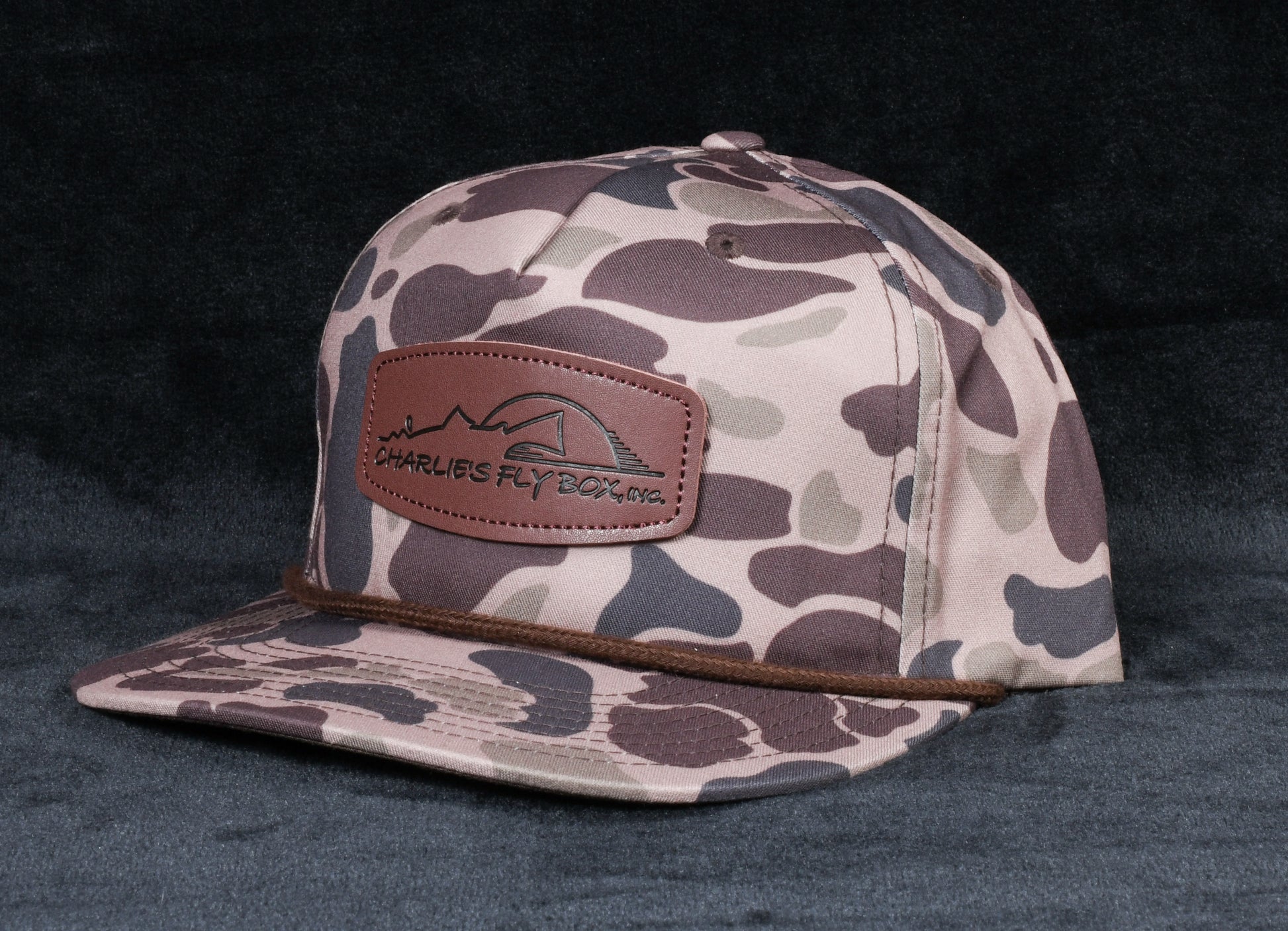 CFB Flat Bill Trucker, Brown Camo with Leather Patch Logo