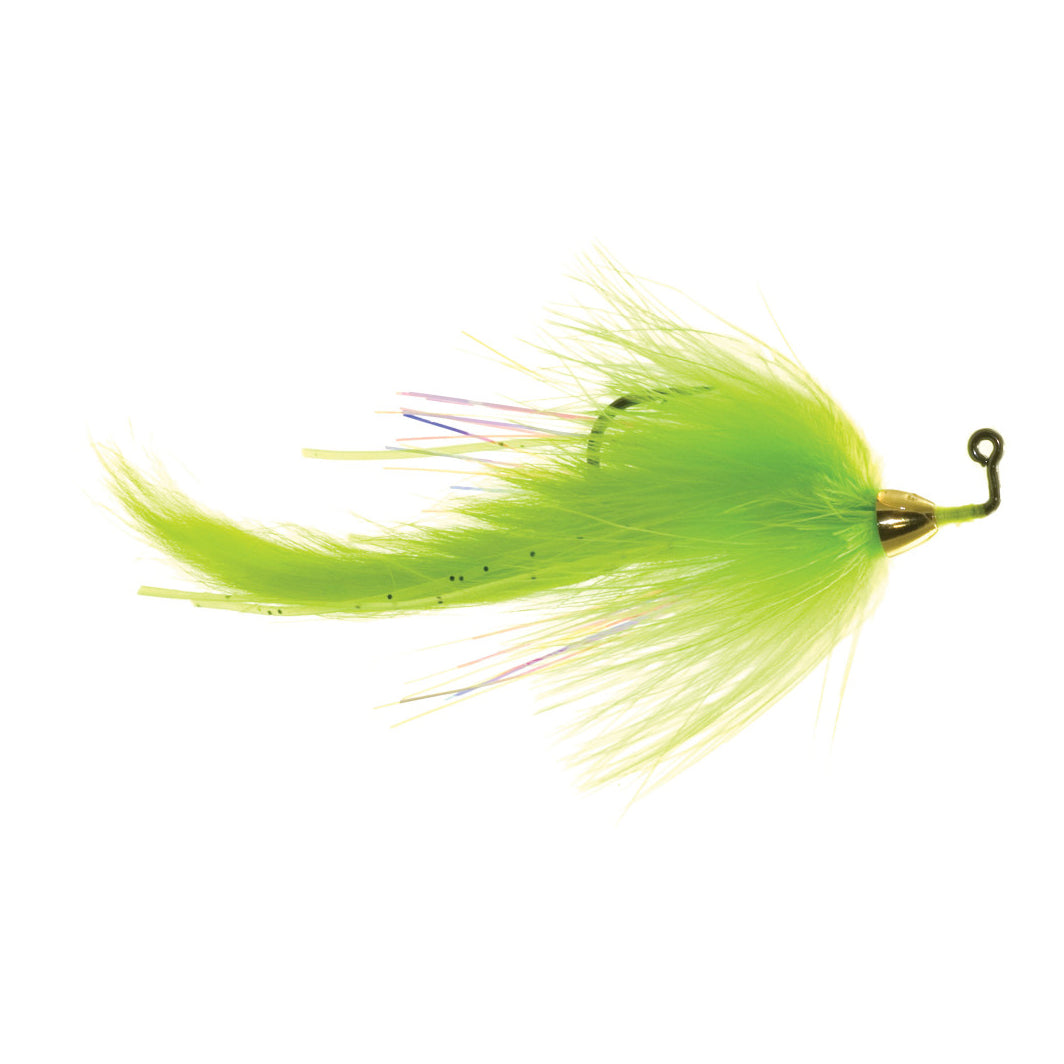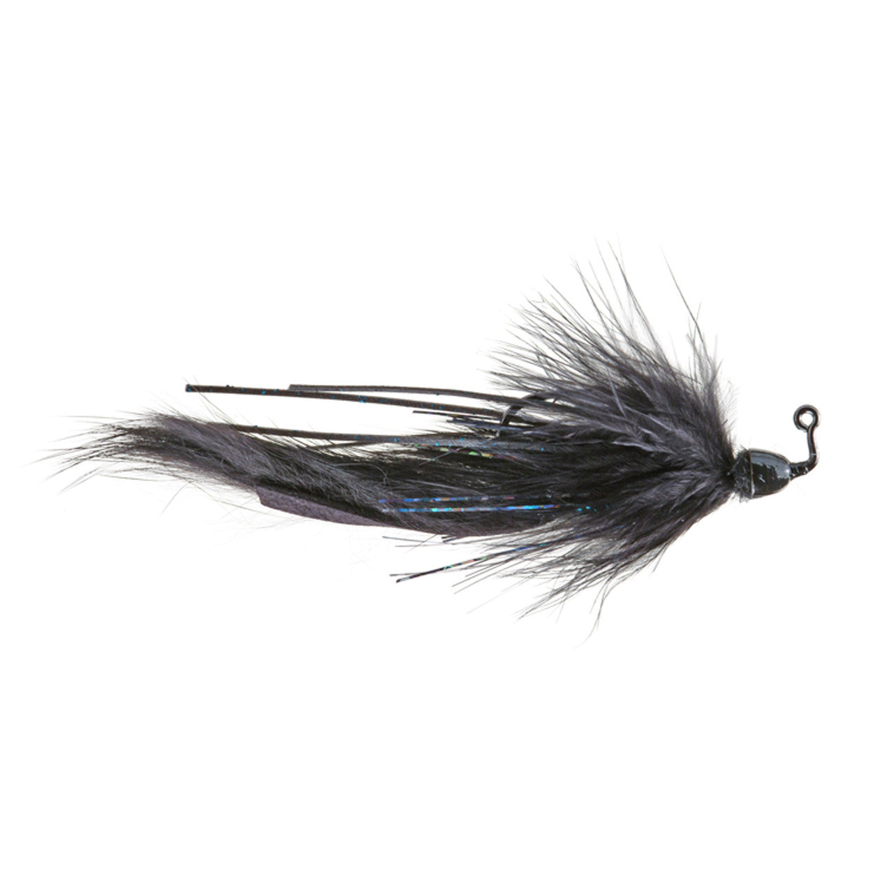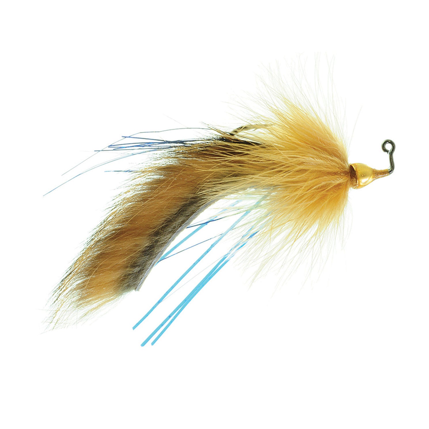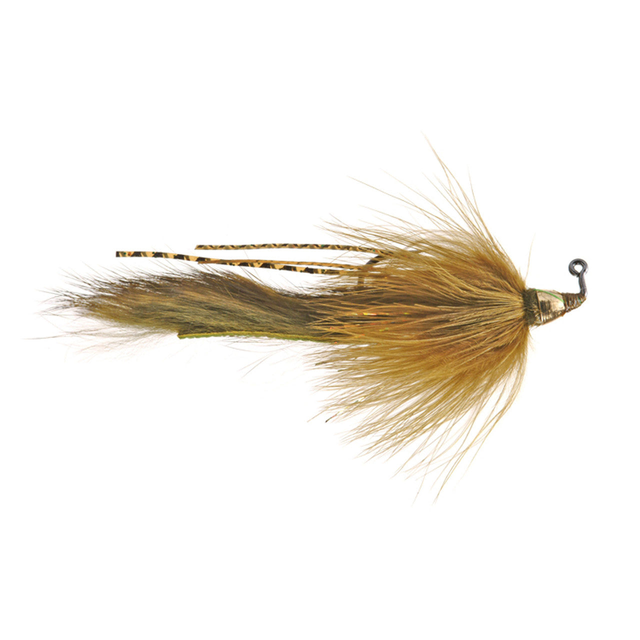 In the Spring, one can usually find "Copper John" Barr kicking around the bass ponds outside of Boulder. His tackle consisted of one fly rod and several ultra– light spinning rods. His favorite "bait"? A 3/8 oz. Jig with a 5" Yamamoto Twin– tail Grub trailer. John buys his jigs, but he ties his flies, and he wanted a fly that would fish like his favorite bait. It had to "hop like a crawdad and swim like a streamer". So, if one wants a fly to jig, tie it on a jig hook. John settled on the Gamakatsu 6041 90 degree jig hook. After several attempts of tying and casting, the result is the Meat Whistle After testing it against his ol' standby, the jig and Twin–tail Grub, John discovered he had a fly that fished as well as the conventional lure. Now John fishes the ponds with fewer spinning rods but lots of Meat Whistle flies. (***Important: do not mistake the 3/0 for an overly large fly. It is not, and is THE best size for all–around large mouth flyrodding and can be cast with a 7 wt.) How to fish: a) Throw it to the bank and "hop and jerk" it down the slope. b) Just like a streamer, but always with pauses: strip, strip and drop. Always watch the line and leader for strike detection of the drop. c) hop and sit, especially with the crawdad color. This fly is constructed with material that is in perpetual motion. Do not consider this as simply a bass fly. It's an effective "frog water" trout streamer. But whether fishing for bass, trout or whatever, there is really no wrong way with a Meat Whistle.