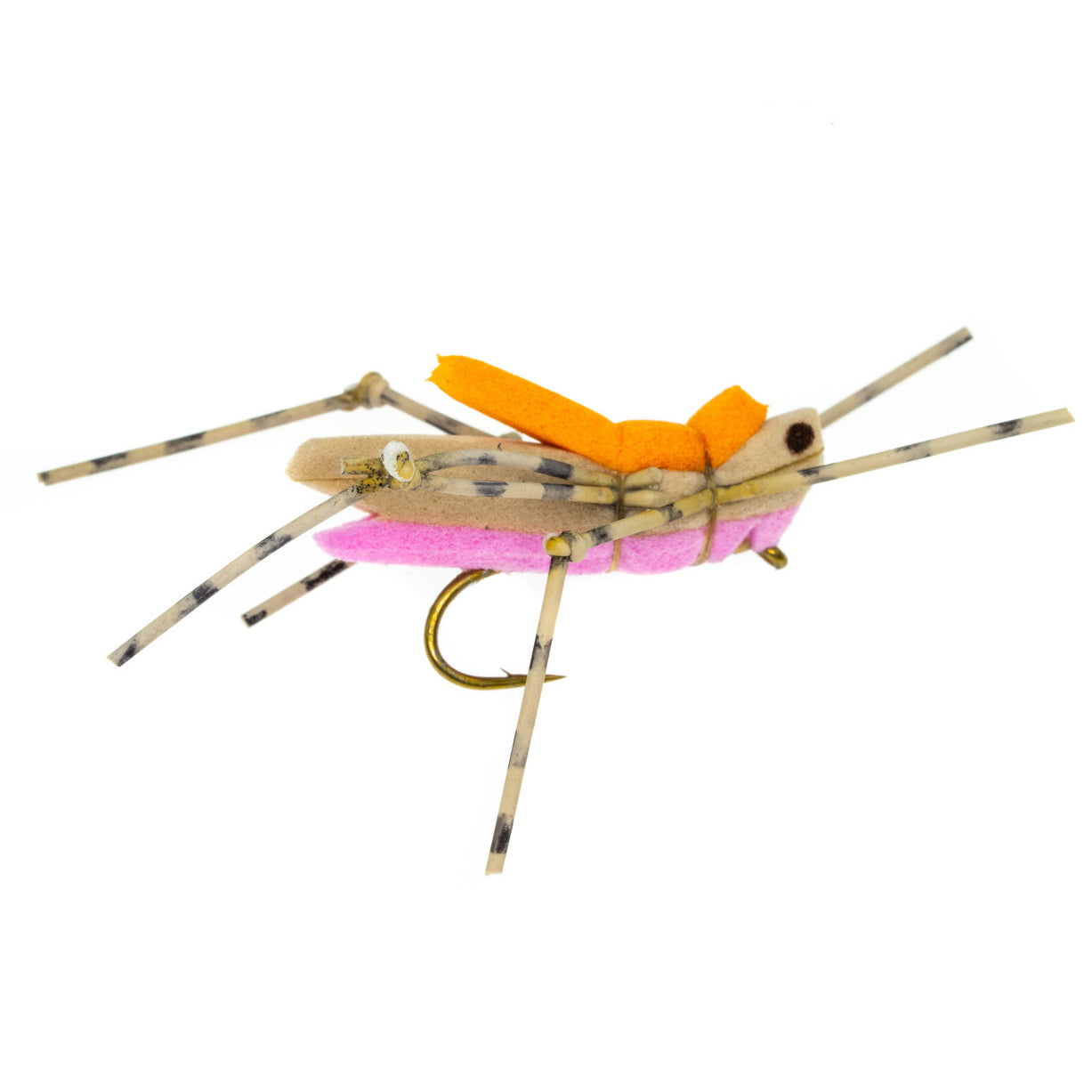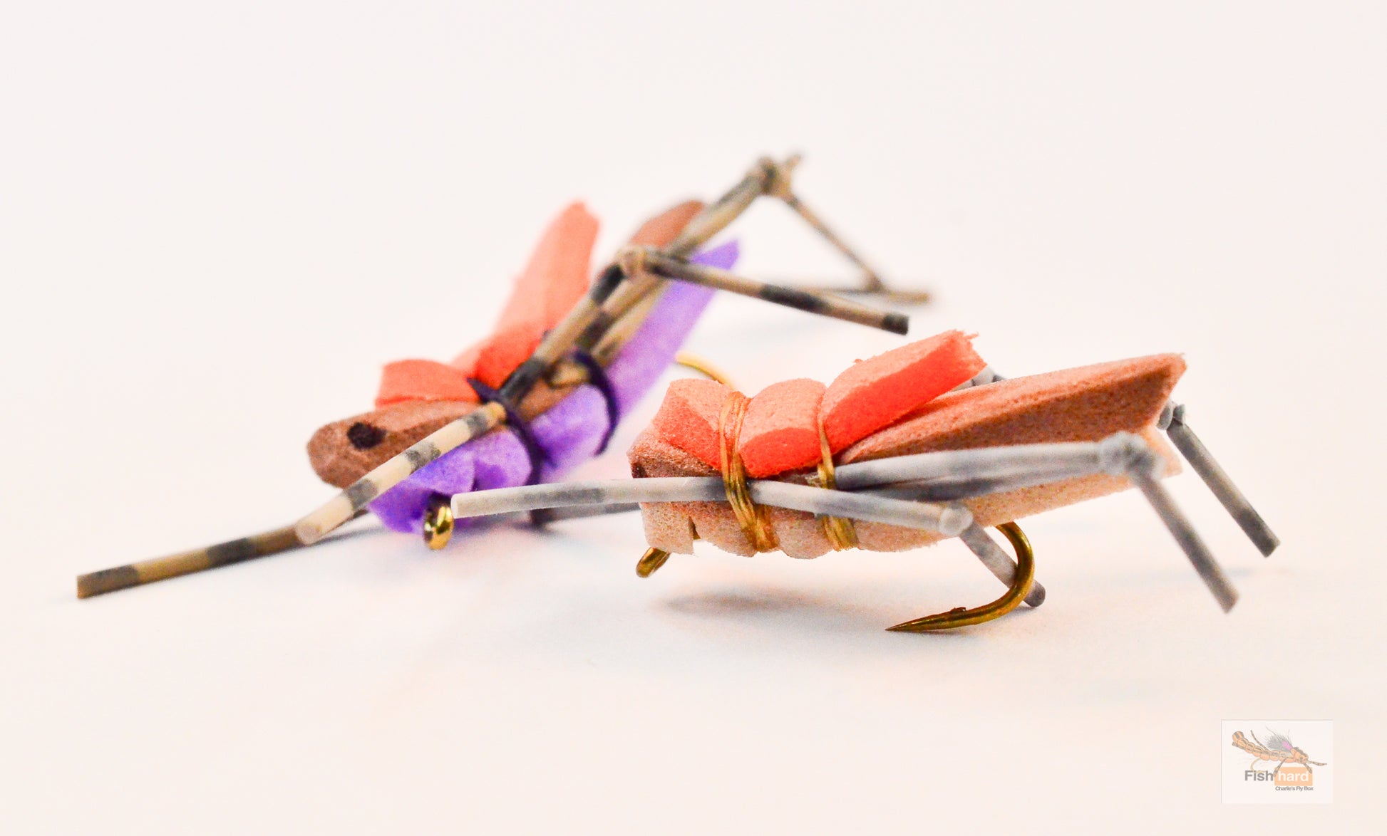 "I took some time developing this fly. I see the basic weakness in a lot of fly design stemming from the creator thinking they know what the natural looks like and then creating something that falls short. For the creation of the hopper I took live specimens from three different regions, stuck pins through them, and stuck those pins into my tying table. I looked at them and fussed with possible patterns for seven months until getting the first real prototype.