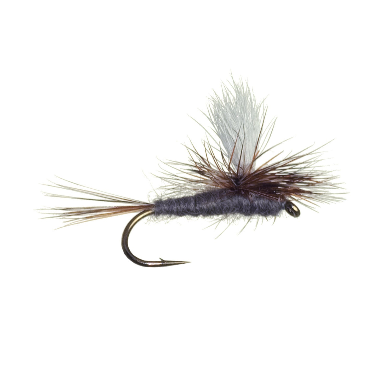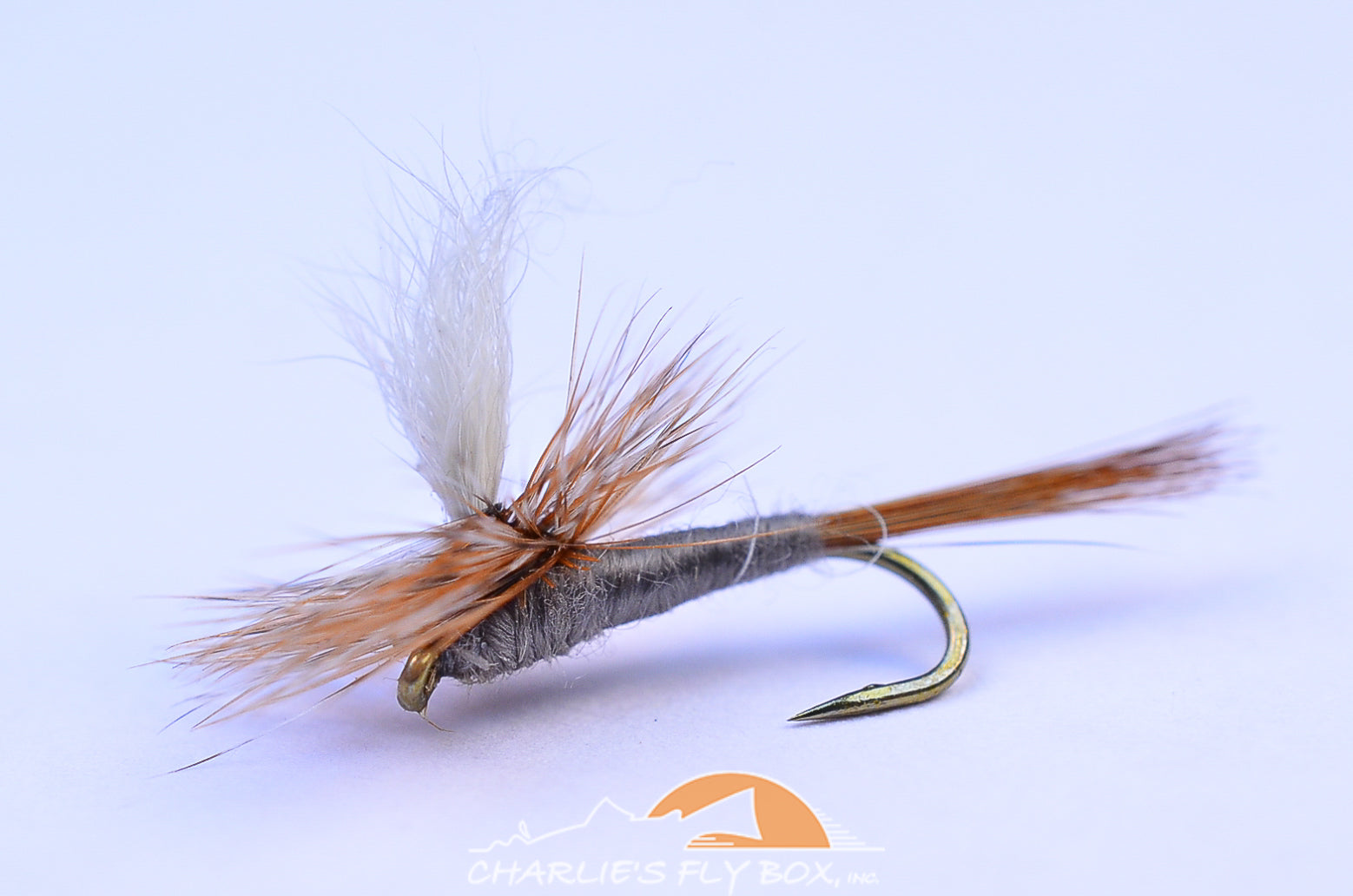 If you have one dry fly in your box, this should be it. One of the most versatile and effective dry fly patterns available and usually the answer of the often-asked question “if you could only fish one dry fly, what would it be?” Its effectiveness comes from a very realistic silhouette that sits low in the water and the highly visible wing that is known to be trigger for trout to eat. The highly visible wing is also in part responsible for its popularity among anglers. The calftail wing and parachute-style hackle also add floatation. Don’t leave home without a wide range of sizes in your box!