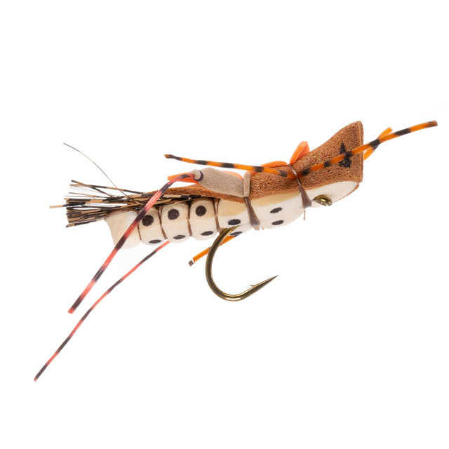 Featuring a wide underbody platform and an ultra-realistic appearance, the Phat Azz Hopper rides low and steady, making it ideal for fishing as a single fly close to the bank or for suspending your favorite dropper underneath. Size 10 only