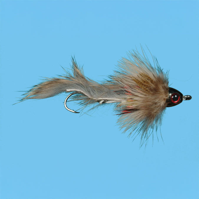 One of the best ever. Articulated with but a single trailer hook dangling off the back of the rabbit strip wing that flows back from the oversized cone head, this fly shakes and shimmies and gets eaten. In large size 4 and small size 8.