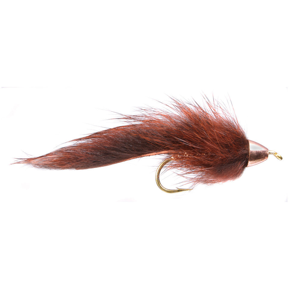 Put a new tying material into the hands of a true fly fishing predator and frequently the result is a devastatingly effective style of fly, in this case the Slump Buster. Years ago the Wapsi boys sent John Barr several colors of new "zonker–cut" Pine Squirrel strips. Unlike zonker strips of rabbit with its very long hair, these skin strips were short–haired, nicely mottled, and thin skinned for easy wrapping. Instead of listing the positive attributes of this fly's construction, specifically what John employed and more importantly the materials — especially flash — he left out, let's define it another way. It has been fished by John, head–up against many other streamer and bugger variations, in the hands of very experienced anglers, and it has been the winning fly every single time! John has fished the Slump Buster cast tight to the banks, but it is fairly heavy and must be stripped briskly to avoid hanging–up. More often he fishes them upstream — frequently with a two Slump Buster rig — and lets them drift and tumble back down. The flies sink quickly and will dip and dive into rock–seams, deeper runs and depressions, or down the face of drop–offs. Frequently all that is needed beyond dead drifting are occasional sort strips, bumps or small twitches. The fly (or flies) can be fished through the entire drift and into the swing at the downstream finish. Slump Busters also fish great dead–drifted under indicators. John fishes all Slump Busters, singly or in fly combinations, on floating lines and exclusively with Umpqua's 9ft Power Taper leaders, from 0X to 2X. John's favorite color, if he had to choose but one, would be the Rust. This color is different to the fish's eye or simulates a juicy crayfish. If fishing tandem Slump Busters he will fish the Natural in a size 4, trailed by an Olive or Rust in a size 6 or 8. Several sizes and colors of Slump Busters should be in everyone's fly boxes they are really that good.